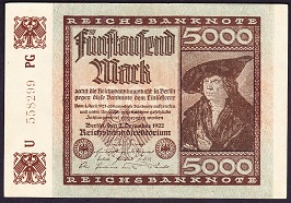 Germany, 5000 Marks, 1922 Durer Artwork |