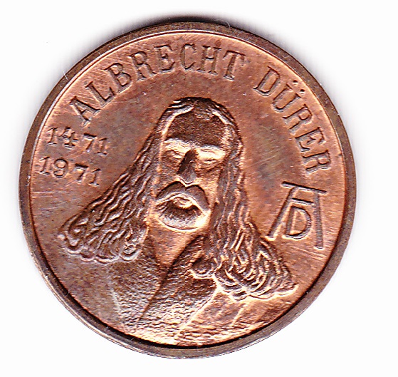 A German painter who may be best known for his ambitious woodcuts. His Melencolia I featured numerous mathematical connections, including a 4x4 magic square, geometric tools, and a truncated rhombohedron. Probably his most significant connection to mathematics was his The Four Books on Measurement, published in 1525. This was the first mathematics book in German written for adults.