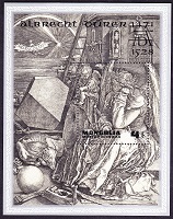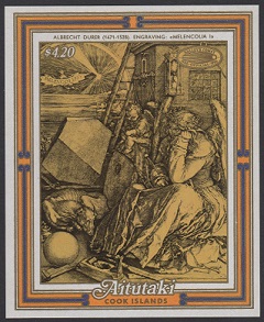 A German painter who may be best known for his ambitious woodcuts. His Melencolia I featured numerous mathematical connections, including a 4x4 magic square, geometric tools, and a truncated rhombohedron. Probably his most significant connection to mathematics was his The Four Books on Measurement, published in 1525. This was the first mathematics book in German written for adults.