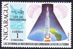 Nicaragua, 1cor, 1971 Scott: 880 A88 Tsiolkovski's Law |