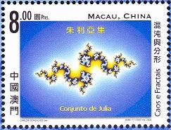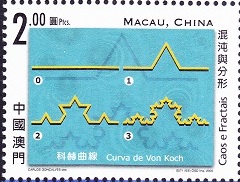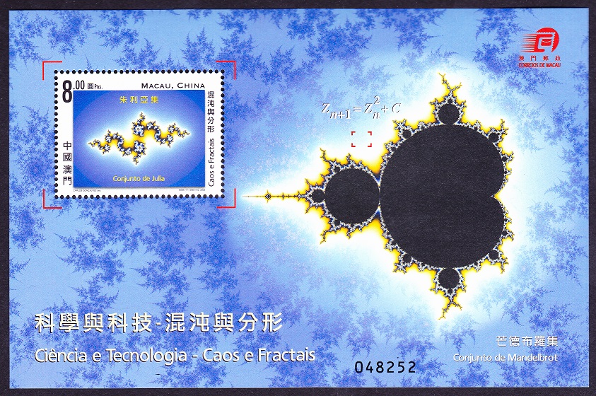 A fractal is a mathematical object that has the property of being self-similar. If you zoom in on the boundary or region of a fractal it appears to be the same as the original object. The boundary of the Mandelbrot set is a fractal as are the Koch snowflake, the Sierpinski triangle, and the Cantor Set, all of which have appeared on stamps.