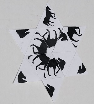 Photocopy of a puzzle to fold to find the fifth pig puzzle.