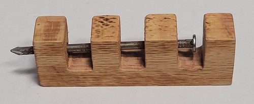 A nail through a piece of wood, but how was this constructed? Do you know how? |
