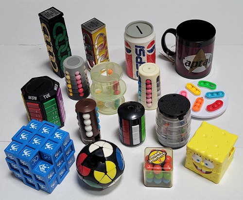 Moving parts of the object to achieve a specific goal is the challenge of these puzzles. Since the Rubik's cube came out the different types of puzzles in this category has exploded, so this page just lists some of the general sub-categories with links to pages that give details on the specific sub-categroies.