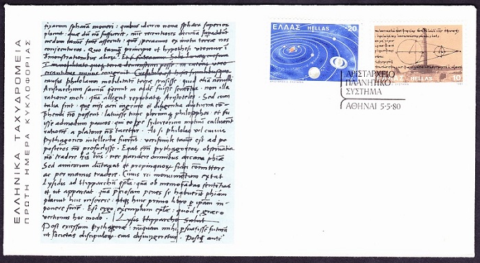 Aristarchus was a Greek astronomer and mathematician. Though Copernicus is given credit for the heliocentric model, Aristarchus was actually the first who considered a model with the sun at the center of the universe. His only known surviving work is On the Sizes and Distances of the Sun and Moon. In it he used correct geometry but incorrect geodetic data to conclude that the sun was 18 to 20 times farther away than the moon.