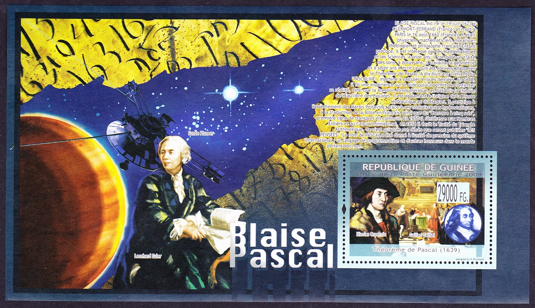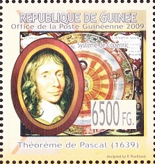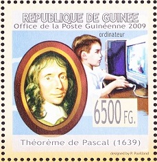 French mathematician who argued in Pensees that one should believe in God because there was all to gain and very little to lose. This belief is often called Pascal's Wager. Pascal constructed a mechanical calculator to assist his father. This precursor to the computer probably contributed to having a computer language, Pascal, named after him. He may be best known for Pascal's triangle, so named because of his Traite du triangle arithmetique (Treatise on the Arithmetical Triangle) where he popularized in Europe a triangular table of binomial coefficients. Pascal also contributed to projective geometry at the age of 16 and probability through correspondence with Pierre de Fermat.