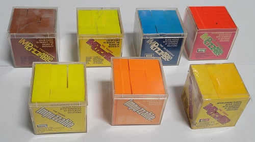 A complete set of Impuzzlable puzzles. Each color is a different puzzle. |