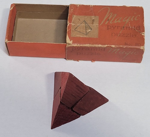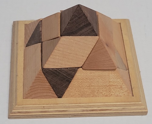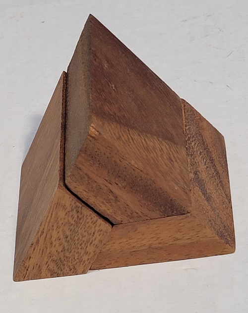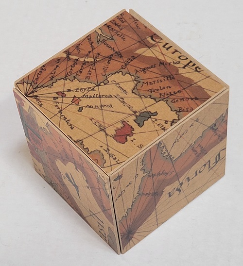 A Rhoma cube puzzle. This picture does not do it justice because it looks like a cube. But in fact the entire cube has a rhombic slant. |