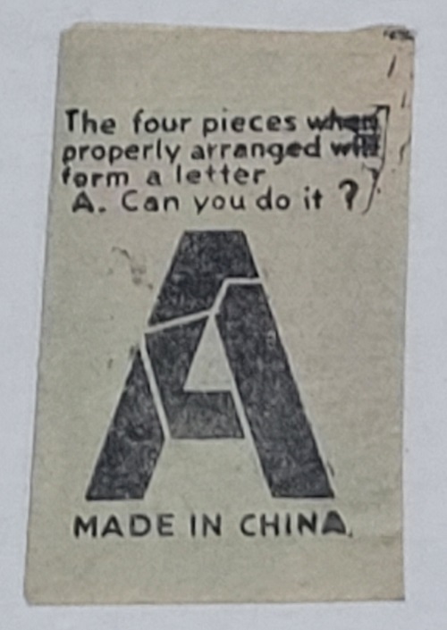 A puzzle dissecting the letter A. |