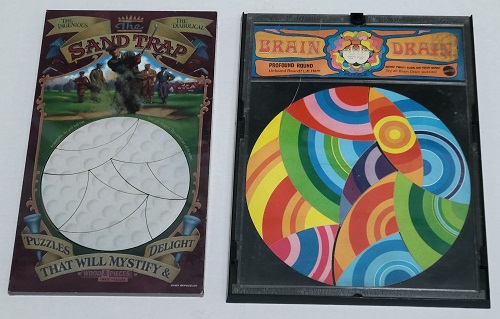 A couple of dissections puzzles of a circle. One is called Sand Trap, while the other is a Brain Drain puzzle called Profound Round. |