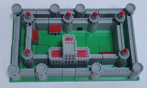 A Camelot puzzle. This is a Pentomino puzzle where only one of the 2,339 solutions to create a 6x10 rectangle forms the castle. |