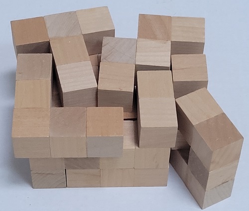 A handmade 3-dimensional Pentomino set. |