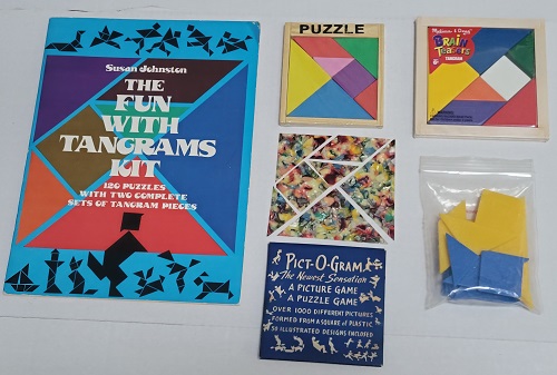 Several Tangrams puzzles. One of the oldest puzzles the 7 shapes can be used to form hundreds of pozzible opbjects. |