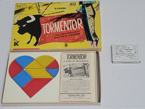 A Tormentor puzzle. A dissection of a heart shape. Also showing is a small version that was a free Bits & Pieces gift when placing an order. |
