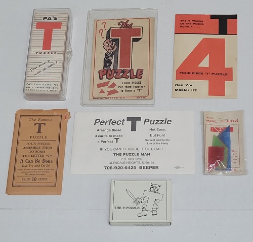 A collection of various dissection puzzles of the capital letter T. |