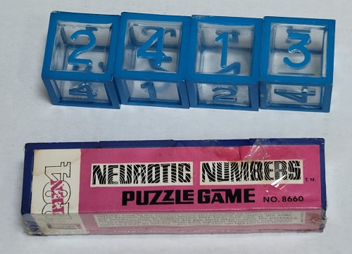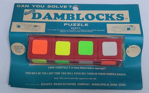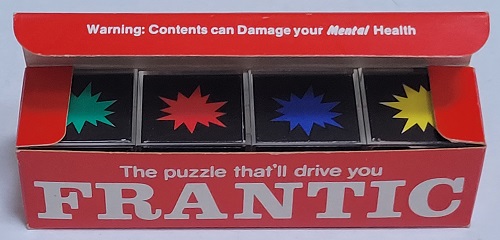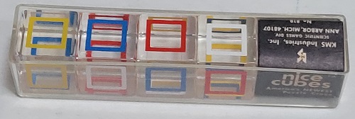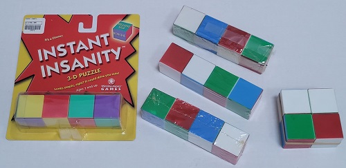 Several Instant Insanity puzzles. This was the common version that came out in the 1970s. |