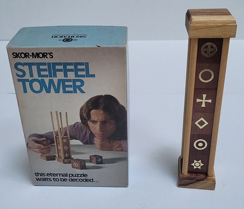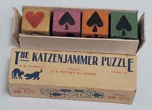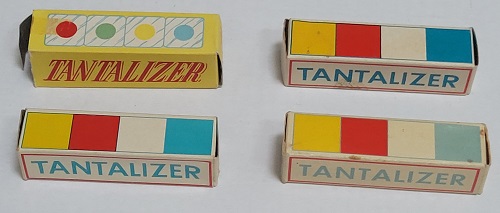 Several Tantalizer puzzles. This was the common version prior to the plastic version of the 1970s. |