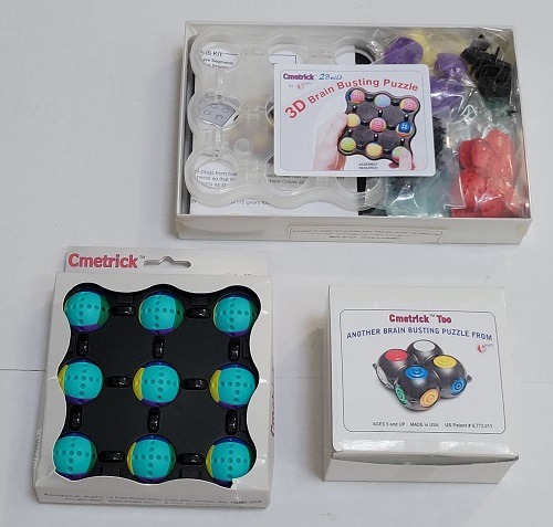 Three different Cmetrick puzzles. One is a 2x2, another is a 3x3 and the third is construct your own version. |