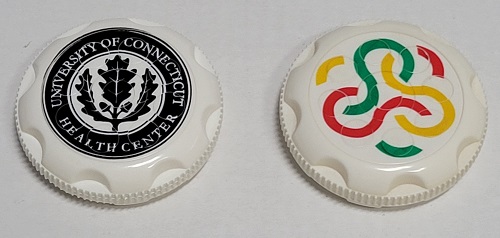 A couple of Enigma puzzles. The one on the left is for the University of Connecticut, while the one on the right has a design to match up. |
