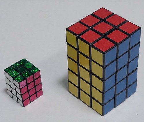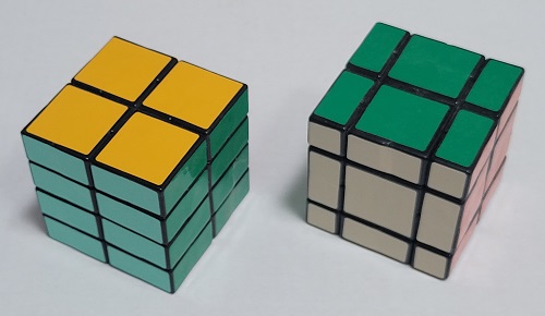 Cubes where each layer has a different thickness. Creates interesting shapes when mixed up. Also called a Mirror cube. |