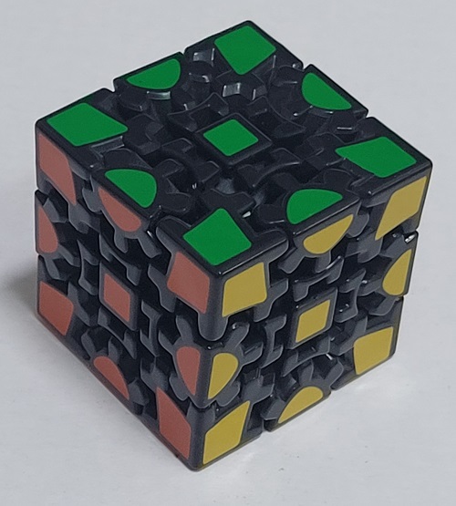 An interesting 3x3x3 puzzle using gears as part of the turning mechanism which changes the dynamics of the movement. |