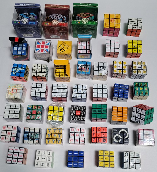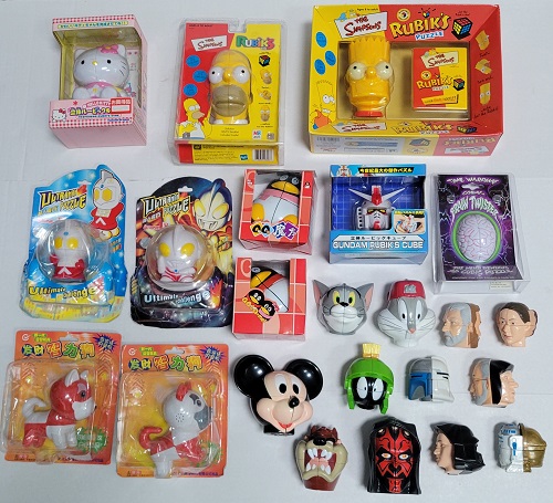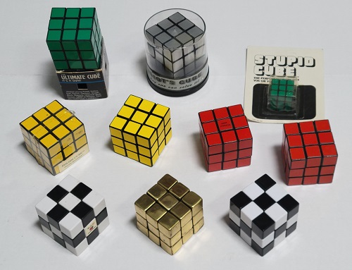 3x3x3 cubes but smaller. Most are keychain cubes. Some involve pictures or patterns. |
