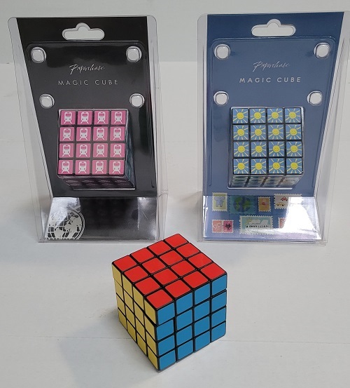 Various 4x4x4 cubes. The unopened versions have the rotation issue of picture or promo 3x3x3 cubes |