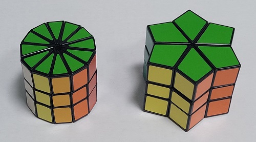 A 2x3x3 puzzle in the shape of a disk or cylinder. |