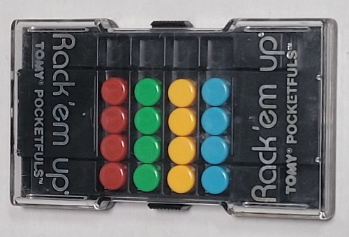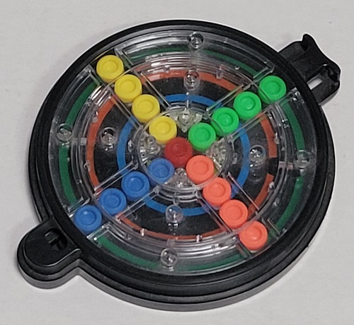 A plastic slider, but this one has a interesting twist. To solve the puzzle the 7 different animals need to placed so that no row or column has more than one of each. This is a Latin Square pattern. The puzzle is currently not solved. |