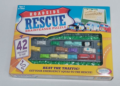 A collection of Rush Hour related puzzles. Included are the original Rush Hour (middle right) along with three additional card sets. In upper left is a Fast Trax (A premium version of Rush Hour). In the upper right is RAilroad RUsh Hour and Safari Rush Hour is in the loweer left./td> |