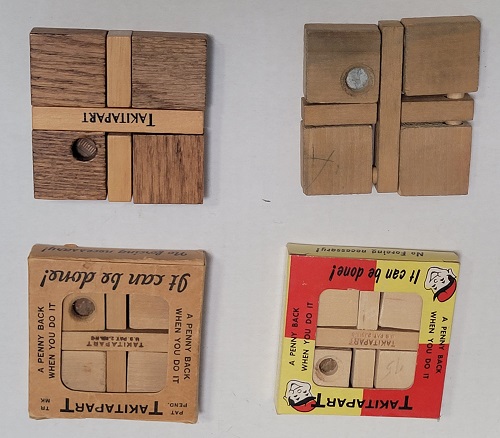 Several Take-it-Apart puzzles. Most have a coin inside. |