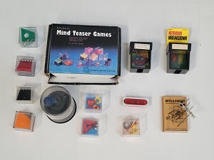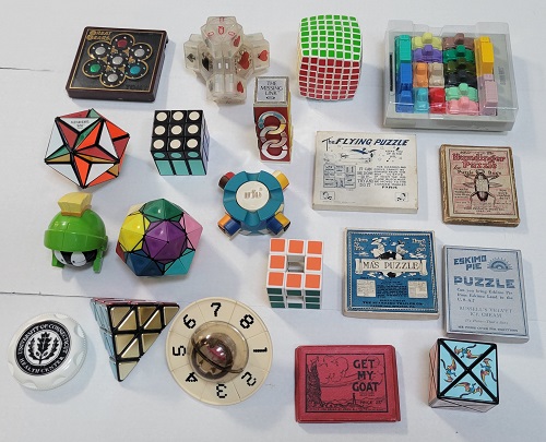 Put TogetherOne of the most common puzzle types, the object is to assemble or put the puzzle together. Common examples include: Tangrams, disssection puzzles, jigsaw puzzles, Soma Cube, Pentominos, checkerboard puzzles, instant Insanity, and edge matching puzzles |